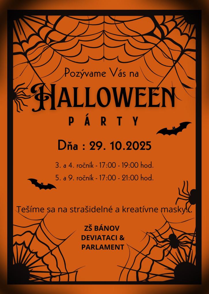 Pozvánka na Halloween párty pre ročníky 3.- 9.