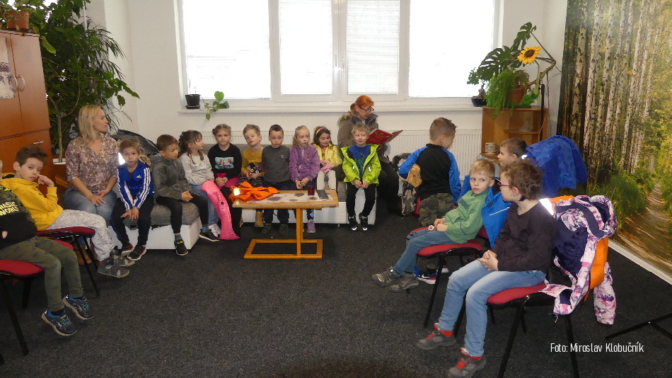 Na návšteve obecnej knižnice si deti vypočuli rozprávku o Popoluške v podaní pani učiteľky Zlatici Bujdákovej, oboznámili sa priestormi knižnice ako aj možnosťou požičať si knihy....a samozrejme ich zaujali rybičky v akváriu.